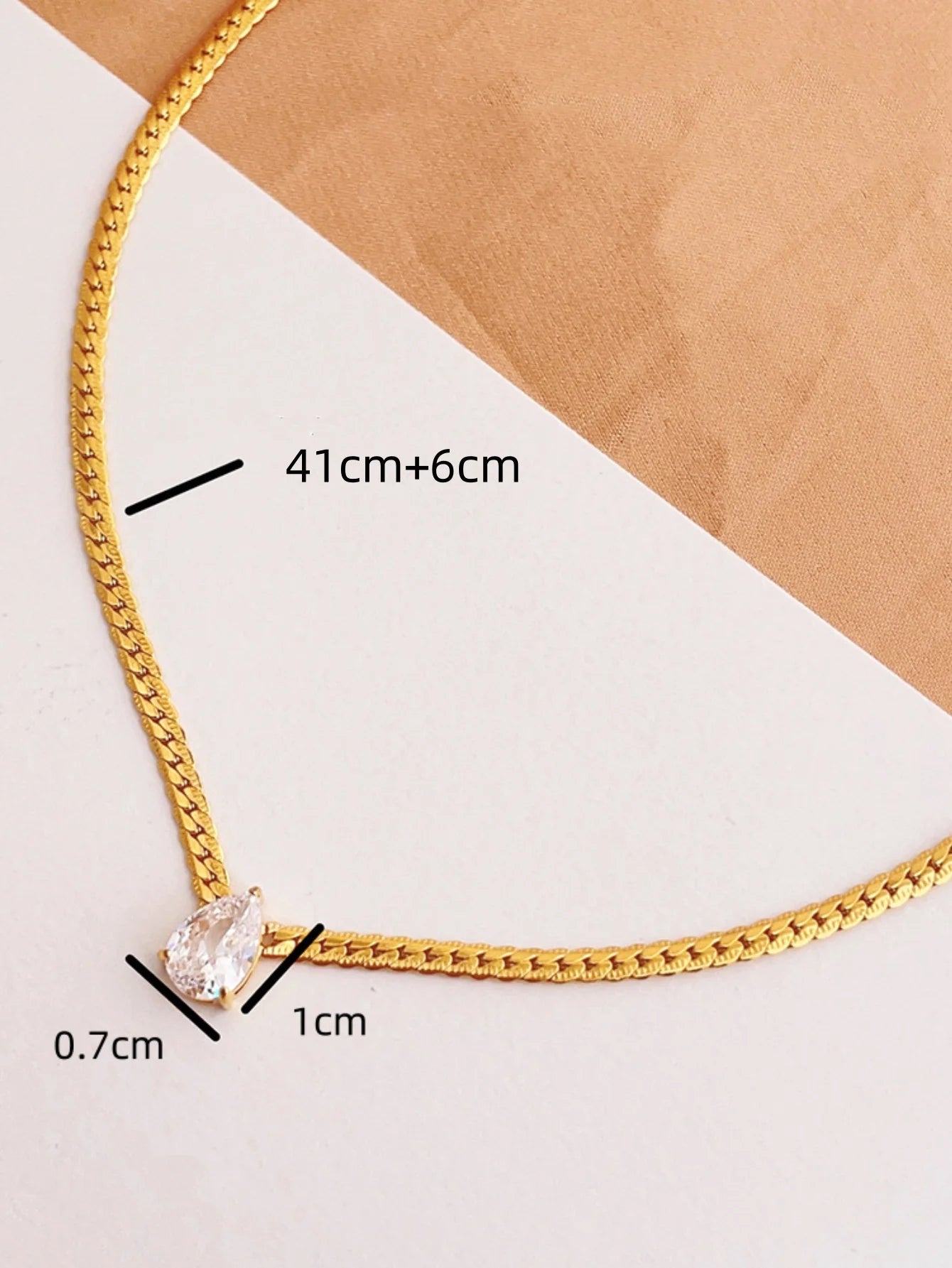 A sinuous river of polished steel—meticulously articulated like a serpent’s spine—cradles a solitary teardrop of faceted zirconia, suspended as if capturing moonlight mid-fall. Each segment of the snake-bone chain flows with an undulating rhythm, cool and weightless against the skin, while the pendant fractures light into liquid constellations. Hypoallergenic and impervious to time, its surgical-grade alloy defies tarnish, transforming daily rituals into gallery-worthy moments. Personalize this talisman with a hidden monogram whisper, and let its fusion of primal geometry and celestial sorrow adorn your story: where resilience meets refined melancholy, and every curve becomes a silent sonnet in steel.