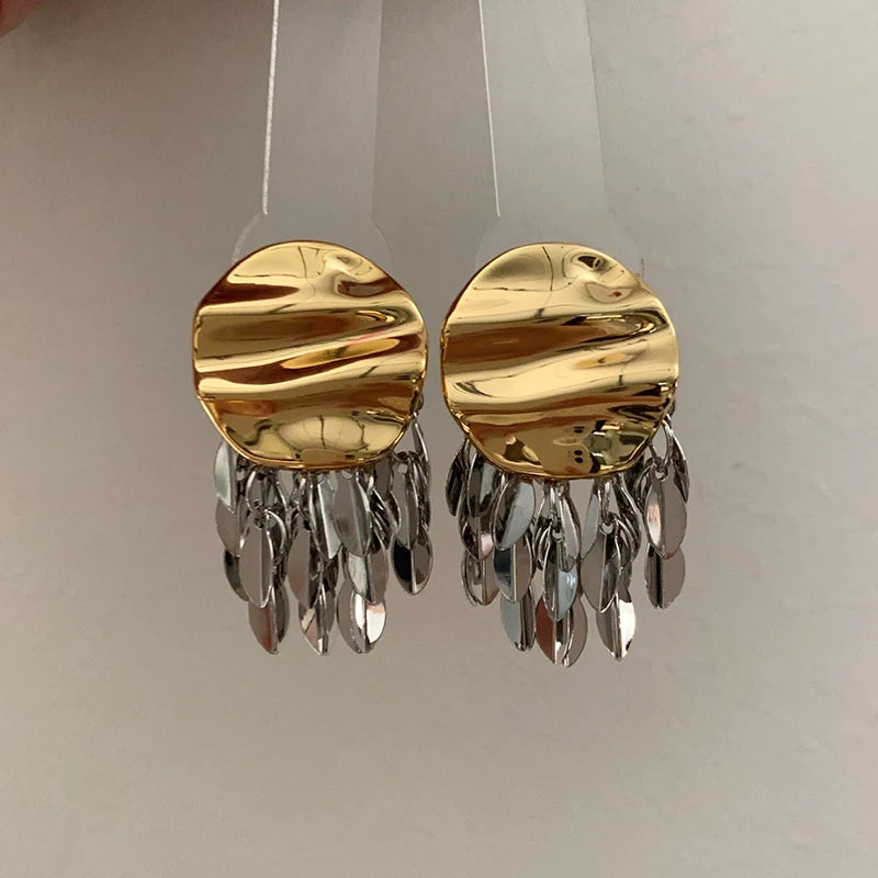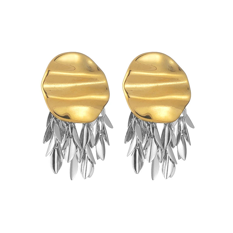 Defy symmetry with the Éclat Libre Hoopscapes—a study in deliberate imperfection. Meticulously sculpted in 18K gold-vermeil brass, these earrings feature irregular organic circles that ripple like molten metal frozen mid-spin. One hoop arcs boldly outward; its counterpart spirals inward, each brushed to a satin-matte finish that drinks light. At the nucleus, a single rose-cut white topaz glints like a captured star, grounding chaos in elegance.