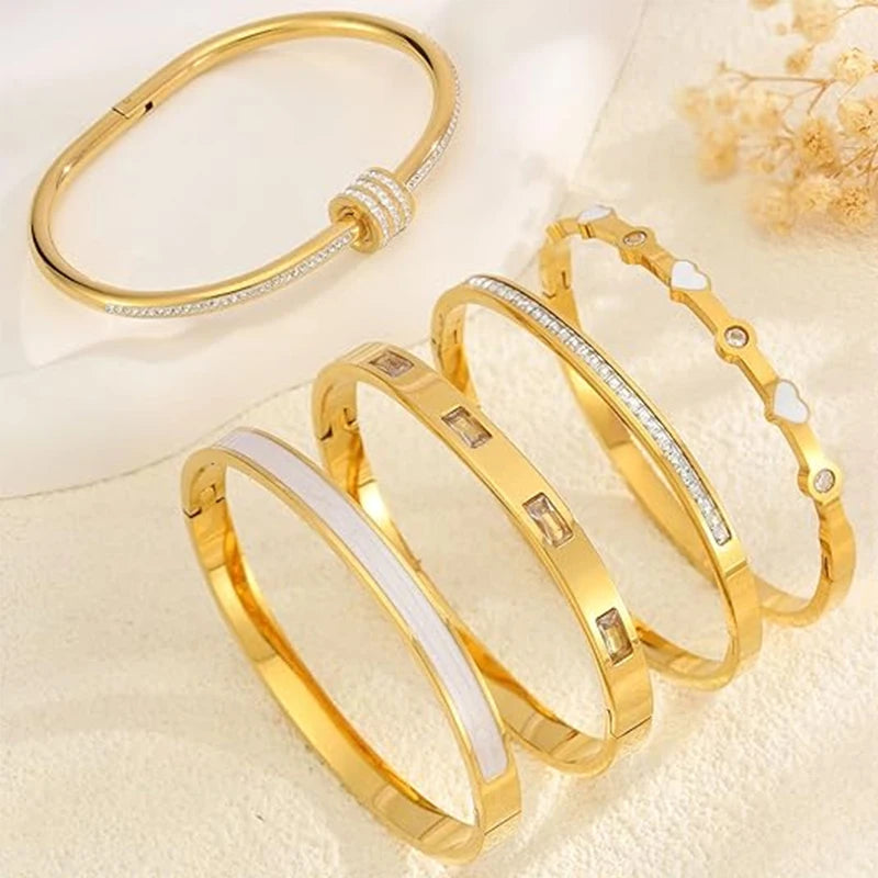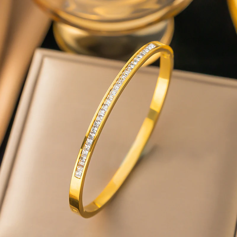 Forged from liquid sunlight and stainless steel alchemy, this bangle coils around the wrist like frozen poetry—its seamless gold-plated curve catching dawn and dusk with equal reverence. Precision-engineered to defy tarnish and time, the waterproof brilliance glows with archival radiance, while minimalist geometry transforms skin into a gallery of gilded shadows. Layer it solo for understated puissance or stack it with celestial constellations; this is 2025’s golden rebellion: where resilience meets refinement, and every flicker of light whispers you are the heirloom.