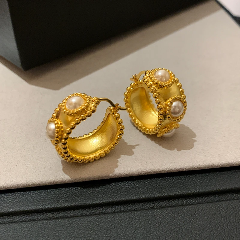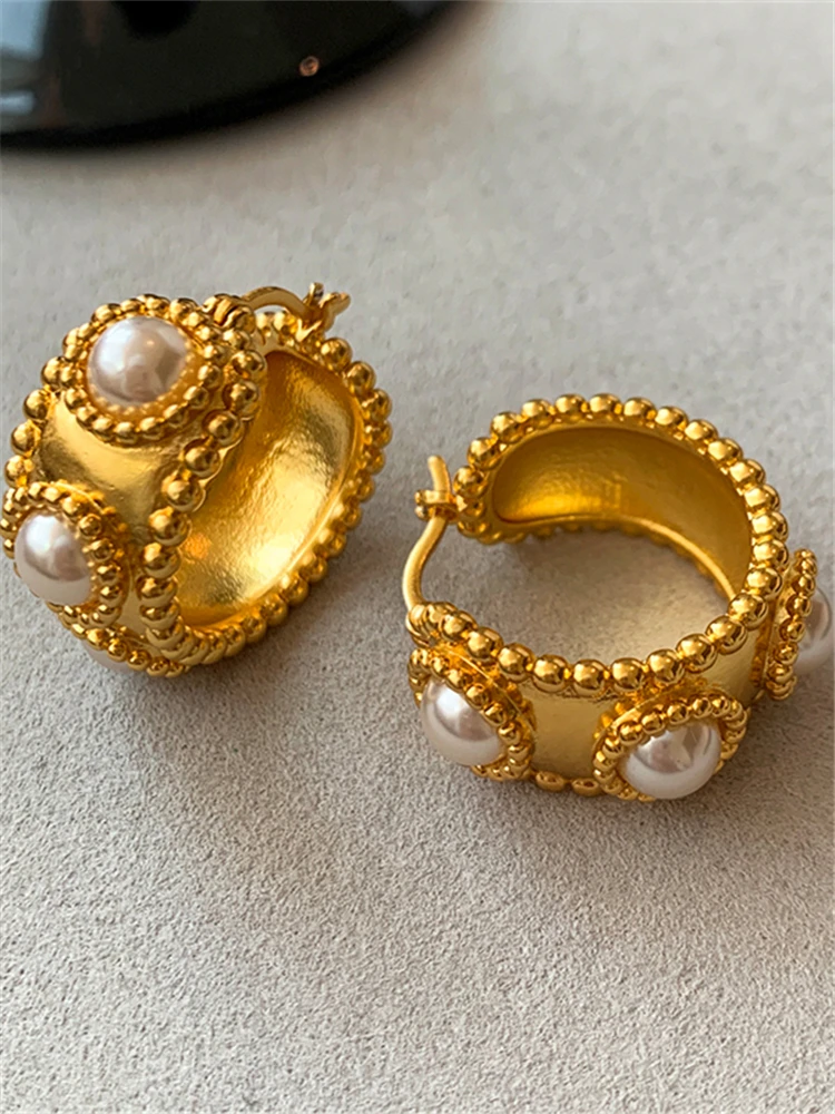 Elevate your elegance with the Kashmir Vintage Pearl Circle Earrings, a timeless fusion of classic charm and contemporary design. Featuring luminous, hand-selected pearls encased in finely crafted vintage-inspired metalwork, these earrings reflect an exquisite sense of style and individuality. Their sculptural circle silhouette and subtle asymmetry speak to the artistry of minority design traditions, reimagined for the modern muse.