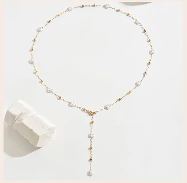 Discover understated luxury with the Celeste Lariat Pearl Drop Necklace — a graceful Y-shaped design that effortlessly blends contemporary minimalism with timeless femininity. Hand-strung luminous pearls accentuate a sleek, stainless steel link chain, creating a captivating silhouette that moves elegance and intention.