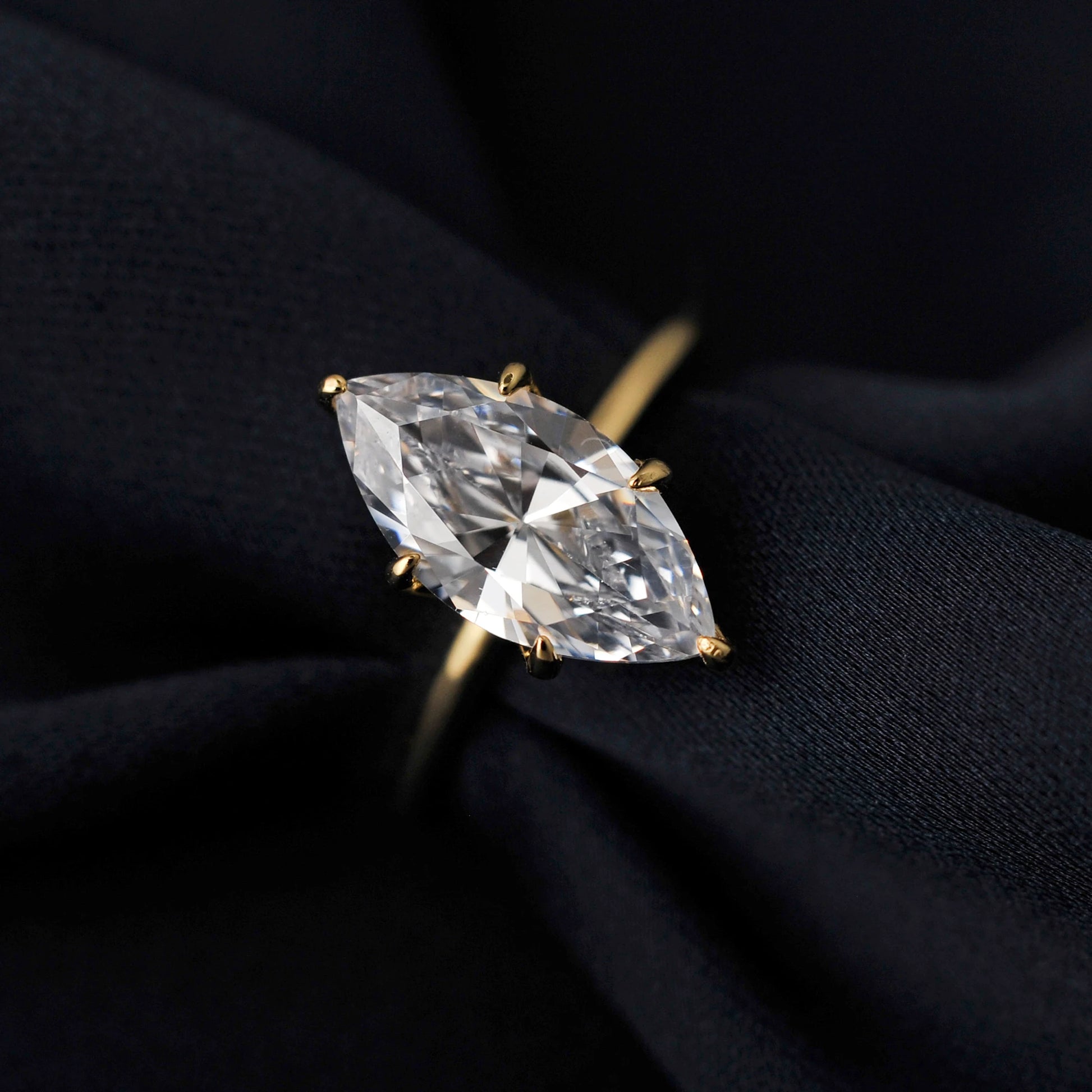 Timeless and refined, this vintage-inspired solitaire ring features a flawless 5A-grade marquise-cut cubic zirconia set in solid 925 sterling silver, finished with a rich 14K yellow gold layer. A graceful symbol of love—perfect for engagements, anniversaries, or elegant daily wear.