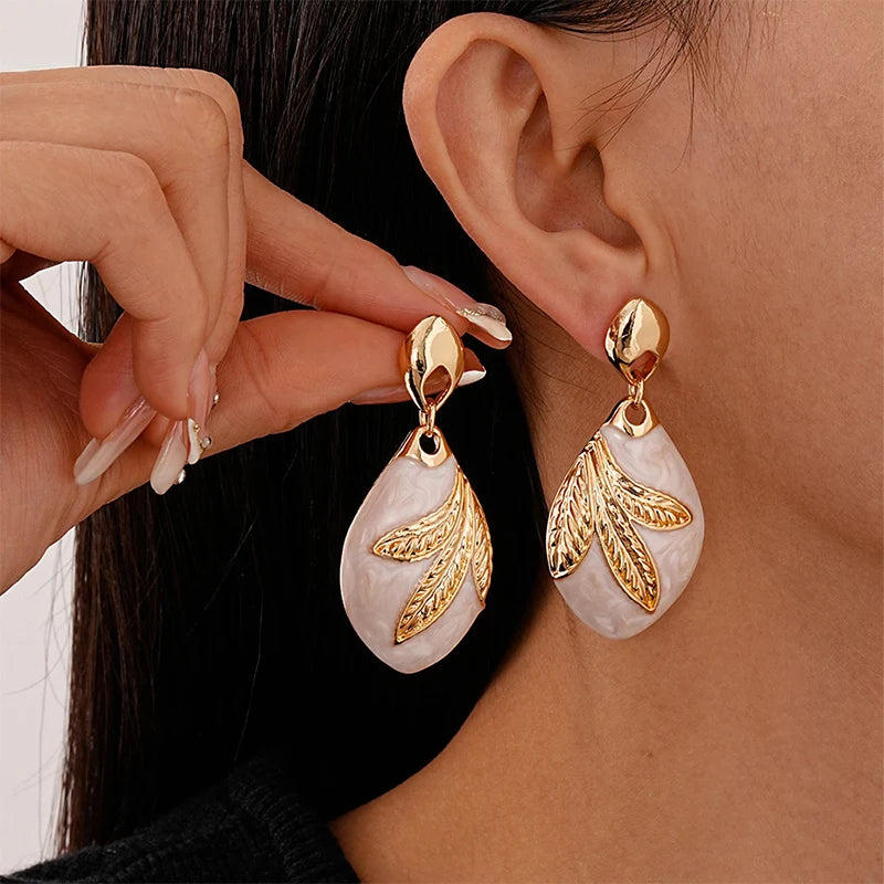 Wear liquid geometry and wild foliage fused in enameled poetry. The Verdant Mirage Cascades feature hand-poured vitreous enamel suspended within asymmetrical brass frames—one a sharp water drop, its counterpart an abstract leaf. Rich teal and burnt ochre enamel pools like stained glass, framed by hand-brushed gold edges that gleam against matte textures. Each piece swings from an almost invisible chain, creating weightless drama for the minimalist rebel.